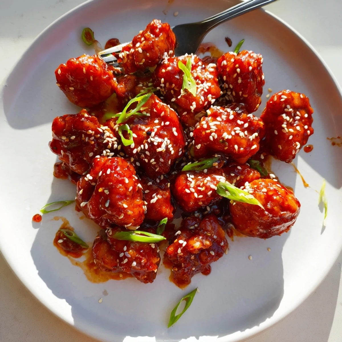 This Korean-inspired chicken features tender bite-sized pieces coated in a vibrant gochujang glaze. The marinade combines Korean chili paste with soy sauce, honey, garlic, and ginger for that perfect balance of sweet and spicy flavors. After marinating, the chicken gets pan-seared until caramelized and cooked through, then simmered with the remaining sauce until it thickens into a glossy coating. Finished with fresh green onions and nutty sesame seeds, this dish delivers restaurant-quality results at home.